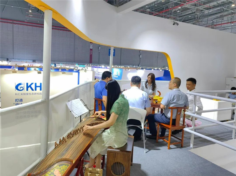 “清筝何缭绕,度曲绿云垂”,伴随着悠扬典雅的古筝声中,二楼“雅间”的洽谈品茗更是别有一番韵味,任楼下展台前人来人往川流不息,仍能怡然自得。于熙熙攘攘嘈杂的展会上觅得一处世外“小桃源”,为来访的新老朋友们提供了绝佳的交流场所。